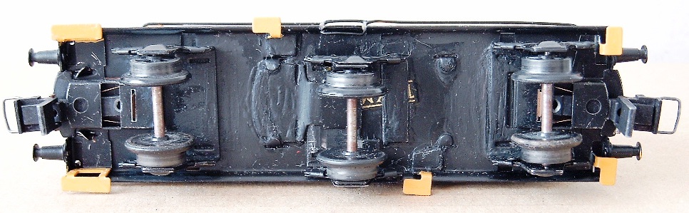 Die vorhandenen Seitenschleifer wurden weiterverwendet, hier gab es keine Modifikationen. Beide Halterungen der Mittelschleifer wurden mitsamt ihrem Andruckblechen abgesägt und wieder in die vorhandenen Bohrungen eingeschraubt. Bedingt durch die Länge des Modells ist auch der Abstand der Seiten- und Mittelschleifer gehörig gewachsen. Für eine sichere Stromversorgung ist dies aber ohne Belang.