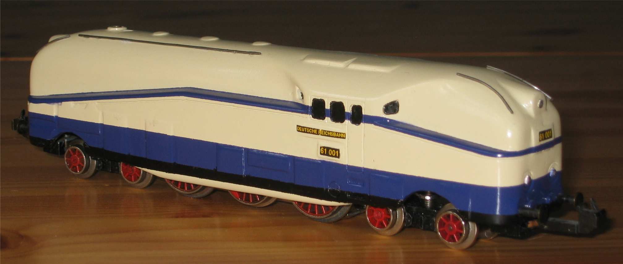Doch nun macht die Lok viel Spaß, auch wenn sie kein reales Vorbild hat. Sie läuft sicher und ruhig und bereichert die Anlage. Sie passt auch gut zu den übrigen Trix-Modellen und fällt nicht zuletzt auch auf durch den imposanten Kohlentender. Hinsichtlich ihrer Zugkraft kann sie auch mit nur 3 angetriebenen Achsen, von denen eine mit Haftreifen belegt ist, überzeugen.