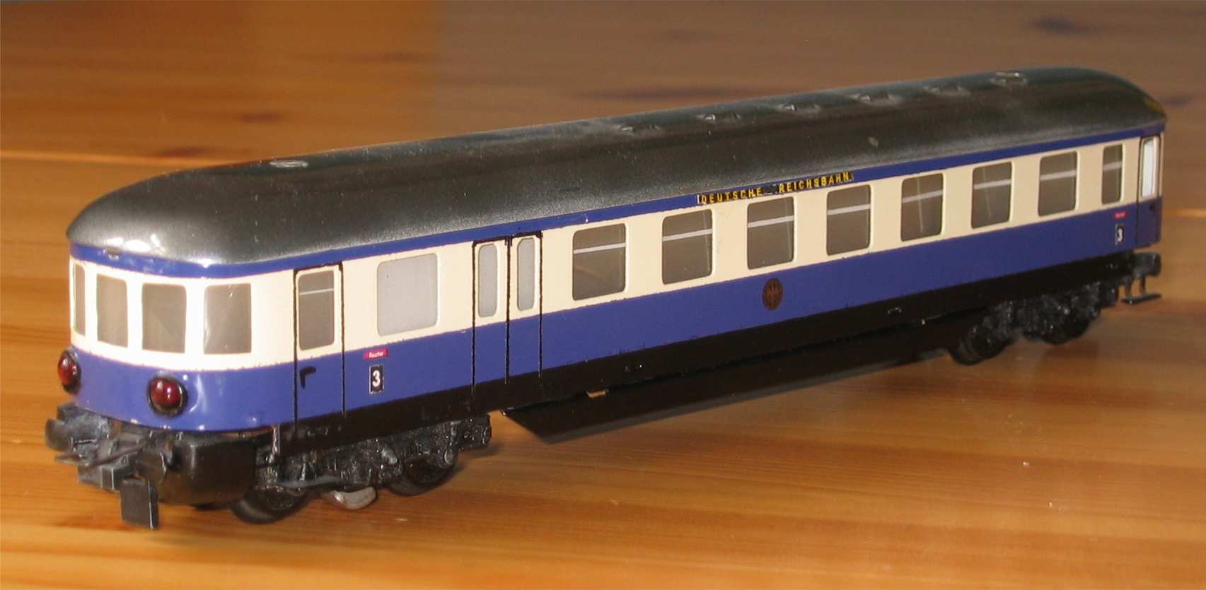 Der Umbau gestaltete sich sehr aufwendig, insbesondere das ständige Ausprobieren der klemmfreien Kurvendurchfahrten zerrte irgendwann doch sehr an den Nerven. Mehrmals habe ich das halbfertige Modell liegen lassen und mich erst ein paar Tage später weiter daran versucht.