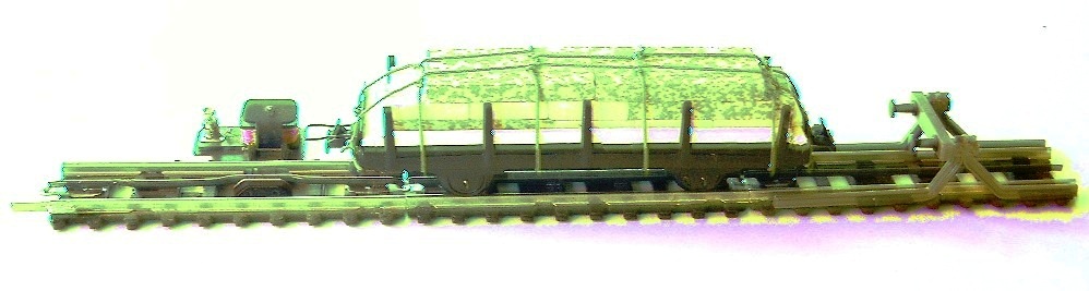 Unter anderem auch dieser prächtige Schienentransportwagen mit einer Plattenladung aus Kunststeinplättchen, die wohl mal aus einem Küchenausbau übrig geblieben sind:
