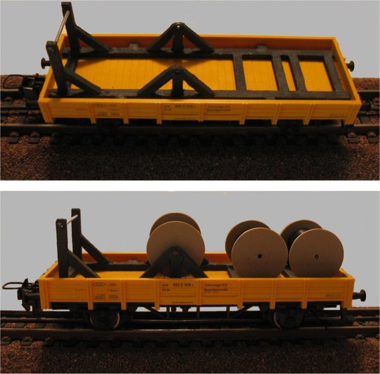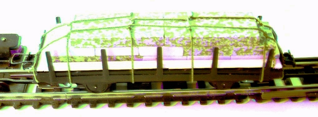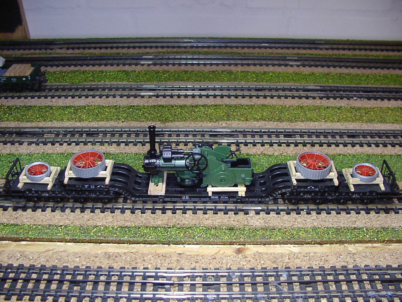Mich fasziniert, dass der vormalige Besitzer diese tolle Idee hatte. Die Abspannung habe ich noch ergänzt, weil die Ladung etwas profan nur mit Klebstreifen gesichert war, die in der langen Zeitspanne eh unansehnlich geworden waren.